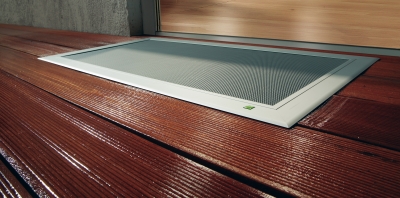 Die elegante Terresa zum Einsatz auf Holzterrassen ermöglicht einen ebenen, rutschhemmenden Zugang und wird in die Öffnung hineingelegt.