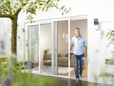Die stabile und doch unauffällige Lösung für große Öffnungen an Terrassen oder Wintergärten. Die bis zu 6 Flügel werden seitlich verschoben.