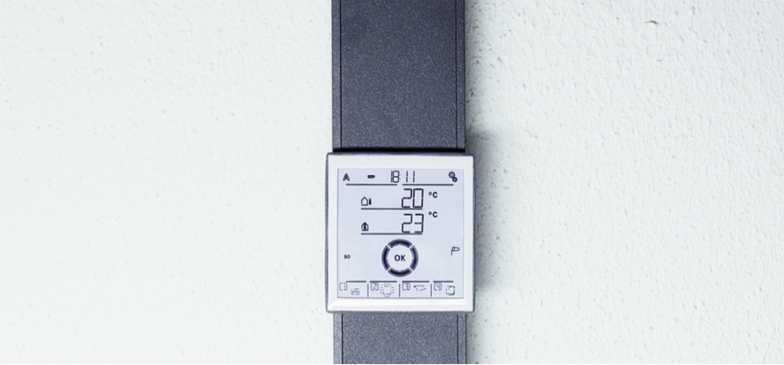 Kabel und Leitungen verschwinden dezent in der Energiesäule. Das problemlos zu programmierende Steuerungselement wird per Magnetchip einfach aufgesetzt. |
